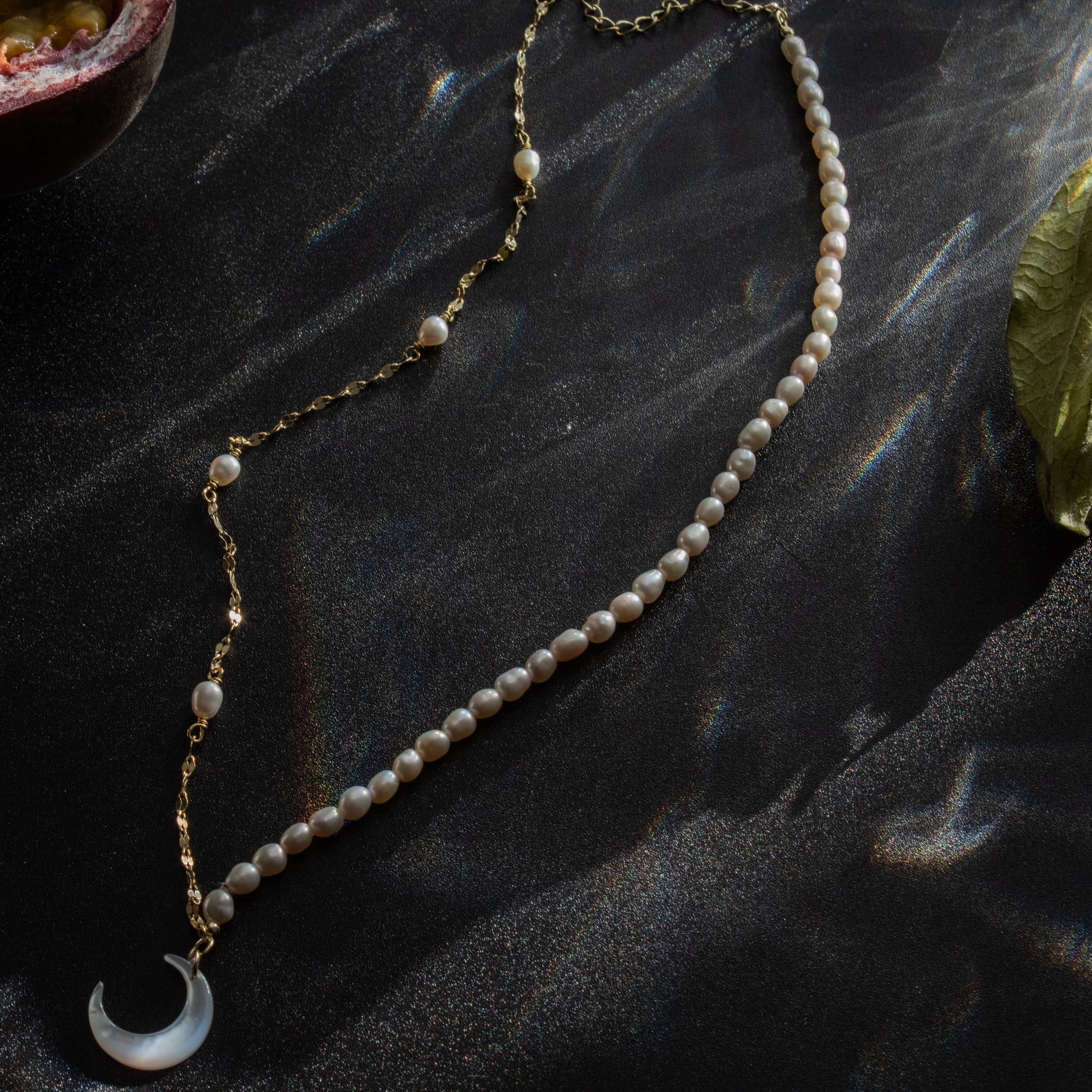 Trage die Lunar Crescent Halskette als Hommage an deinen eigenen Weg und als Zeichen für die unsichtbaren Fäden, die dich mit deinem persönlichen Umfeld unter dem selben mond verbinden.